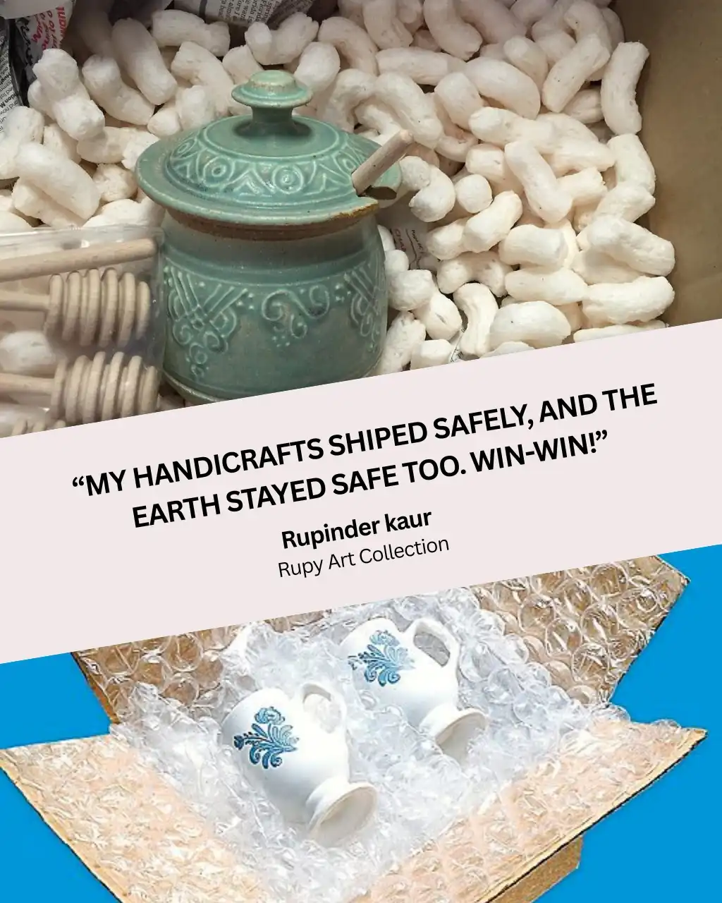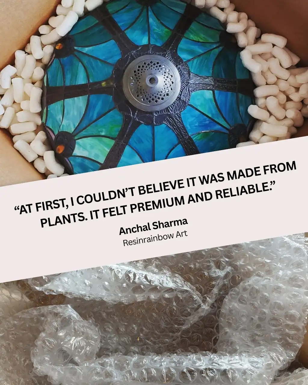 Vriksh Foam is our game-changing, plant-based biodegradable protective foam designed to replace harmful styrofoam with something far better—for your products and the planet. Whether you’re shipping cosmetics, electronics, glassware, or any fragile item, Vriksh Foam acts as a shock-absorbing cushion that keeps everything secure during transit. Made from natural, non-toxic materials, it’s completely safe—even if accidentally inhaled or ingested by pets. It breaks down naturally in soil or water, leaving behind zero waste. Plus, it’s home compostable, so your customers can dispose of it guilt-free.